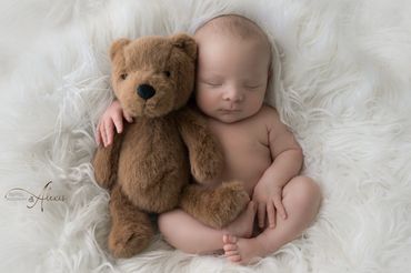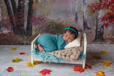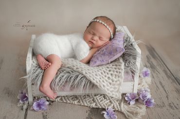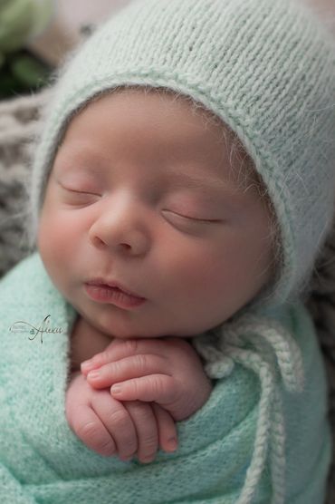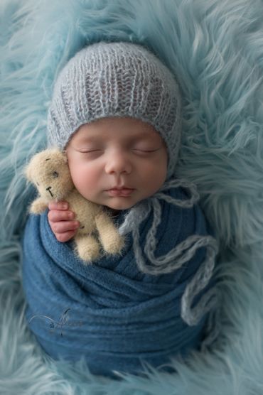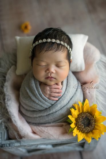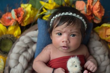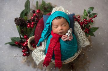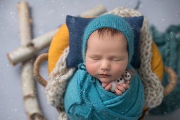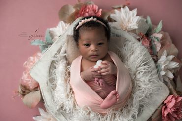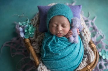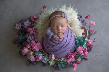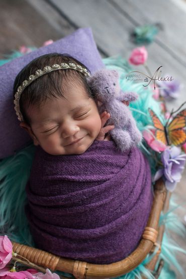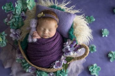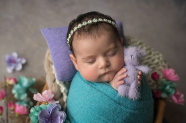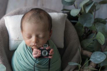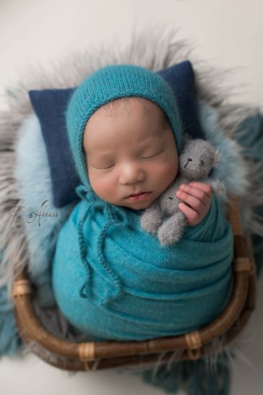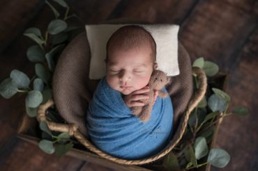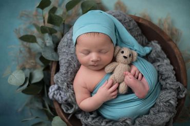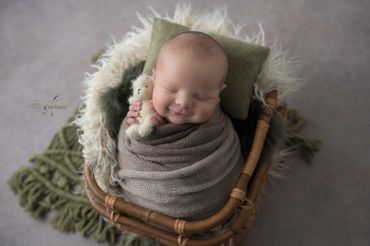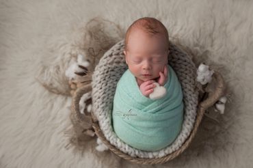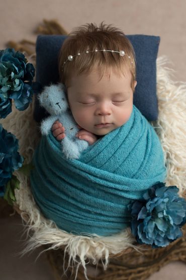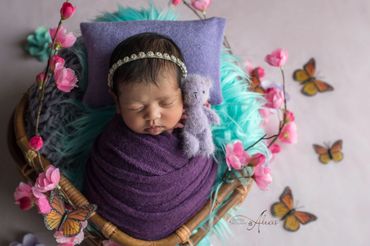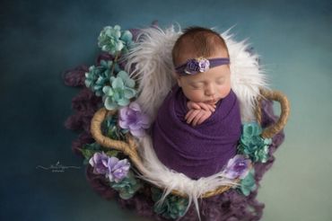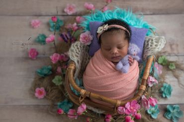 ~ Baby photography includes the use of wraps, props, hats, tiebacks during your newborn session. Baby will will wrapped for entire session in a bucket or basket prop.