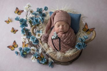 I like to think of myself as a creative photographer when It comes to my newborn setups and I don't make any that look the same as others. I create unique bowl and baskets setups to each baby with the colours we discuss that you want to work with.