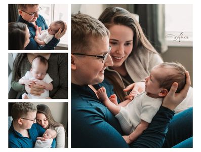 An in home sessions allows for a variety of pictures to be taken from posed shots to a life style session of your favourite areas in the house with baby. Taxes already included in price